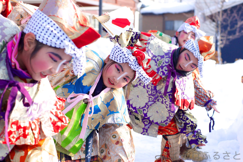 「かまくら」は、400年の伝統を誇る水神様をまつる小正月行事です。かまくらの中では、子供たちが「はいってたんせ(かまくらに入ってください)」、「おがんでたんせ(水神様をおがんでください)」といいながら、あまえこ(甘酒)やお餅を振る舞います。