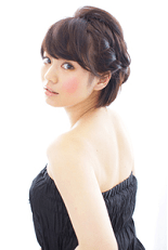 ショートでも、編込みアレンジでゆるふわアップスタイルができます。一気に華やぎますね!