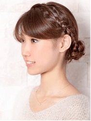 これらも編込みと三つ編み技を使ったアップスタイルです。髪飾りはシンプルなものにしましょう。
